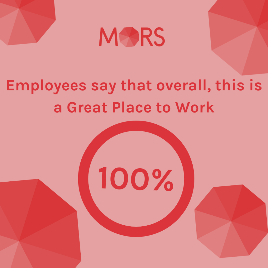 One of the standout aspects of the survey results stated that MORS offers a high level of personal job fulfillment. The company aims to encourage professional growth and development, offering opportunities for employees to expand their skills and advance in their careers. This commitment to personal development is reflected in the 100% positive feedback regarding job satisfaction.